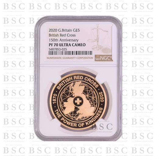 Royal MintCall us: 0800 107 51352020 GB £5 British Red Cross Proof Gold Coin. Graded PF70 Ultra Cameo by NGC. NGC Certification Number: 5487853-025 Exact coin pictured. Supplied...