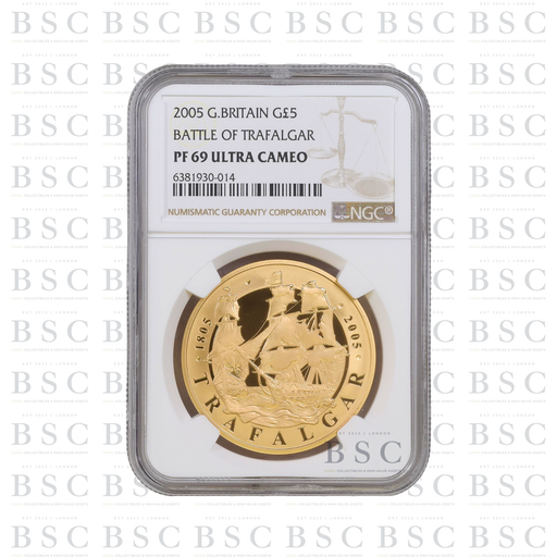 Royal MintCall us: 0800 107 51352005 £5 Battle of Trafalgar Proof Gold Coin. Graded PF69 Ultra Cameo by NGC. NGC Certification Number: 6381930-014 Exact coin pictured. Supplied ...