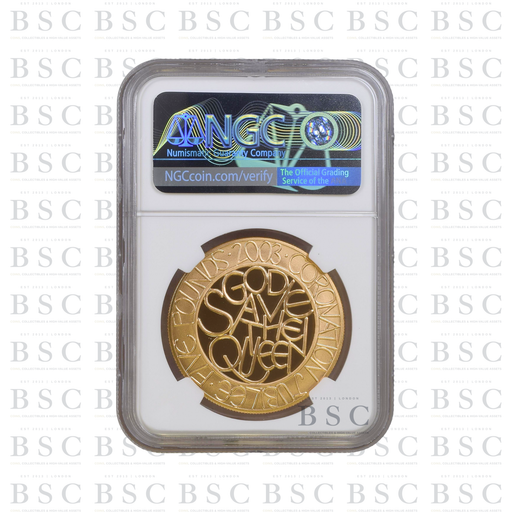 Royal MintCall us: 0800 107 51352003 £5 Queen’s Golden Jubilee Coronation Anniversary Proof Gold Coin. Graded PF69 Ultra Cameo by NGC. NGC Certification Number: 6382275-008 Exac...