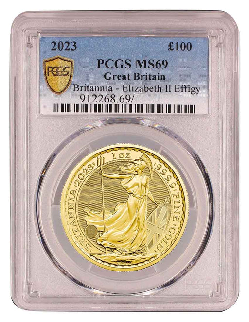 Elizabeth II, 2023 1oz Gold Britannia One Hundred Pounds PCGS MS69
